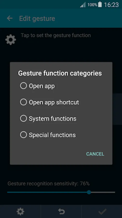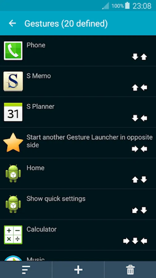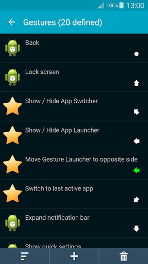 Unlimited no. of custom multi-swipes gestures (single tap supported). Use gesture to open apps, app shortcuts (e.g. Contacts + someone), perform System functions (Back, Home, Lock screen, ...) and Special functions (open built-in App Launcher, App Switcher, Capture screen,...). Each gesture can contain up to 10 different swipe directions and each swipe can even optionally short or long (shown in green color) distinguishable. This app uses Accessibility services to provide functions such as Back, and uses the Device Administrator permission to lock the device.