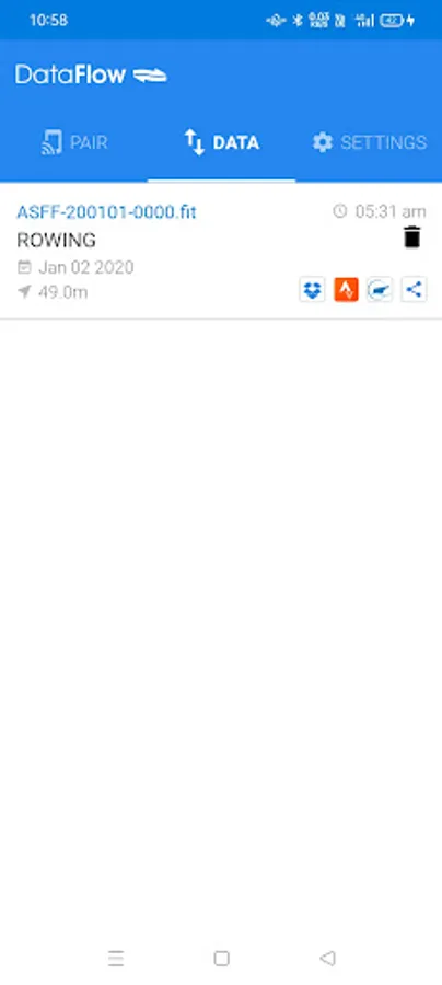 The DataFlow app allows easy data transfer to Ludum, Rowsandall, Strava, etc. This includes both performance data and the tracks of the courses you steered.