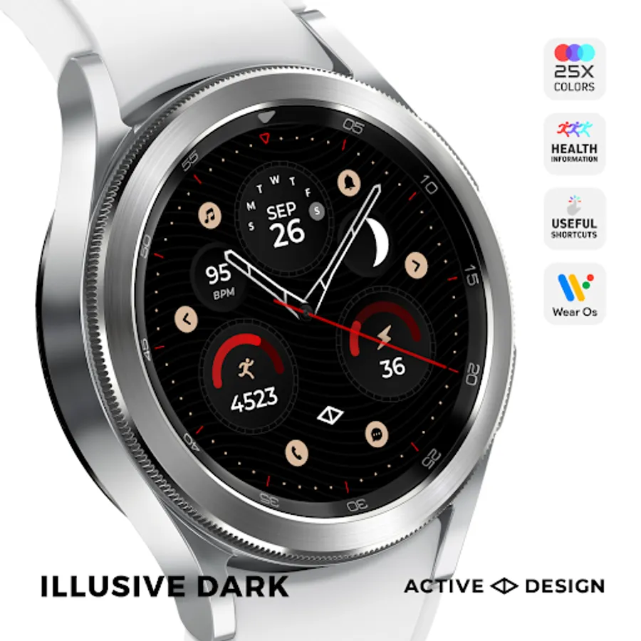 Whether you're dressing up for a night out or keeping it casual, the Illusive Dark Watch Face will give your smartwatch a touch of elegance and sophistication.