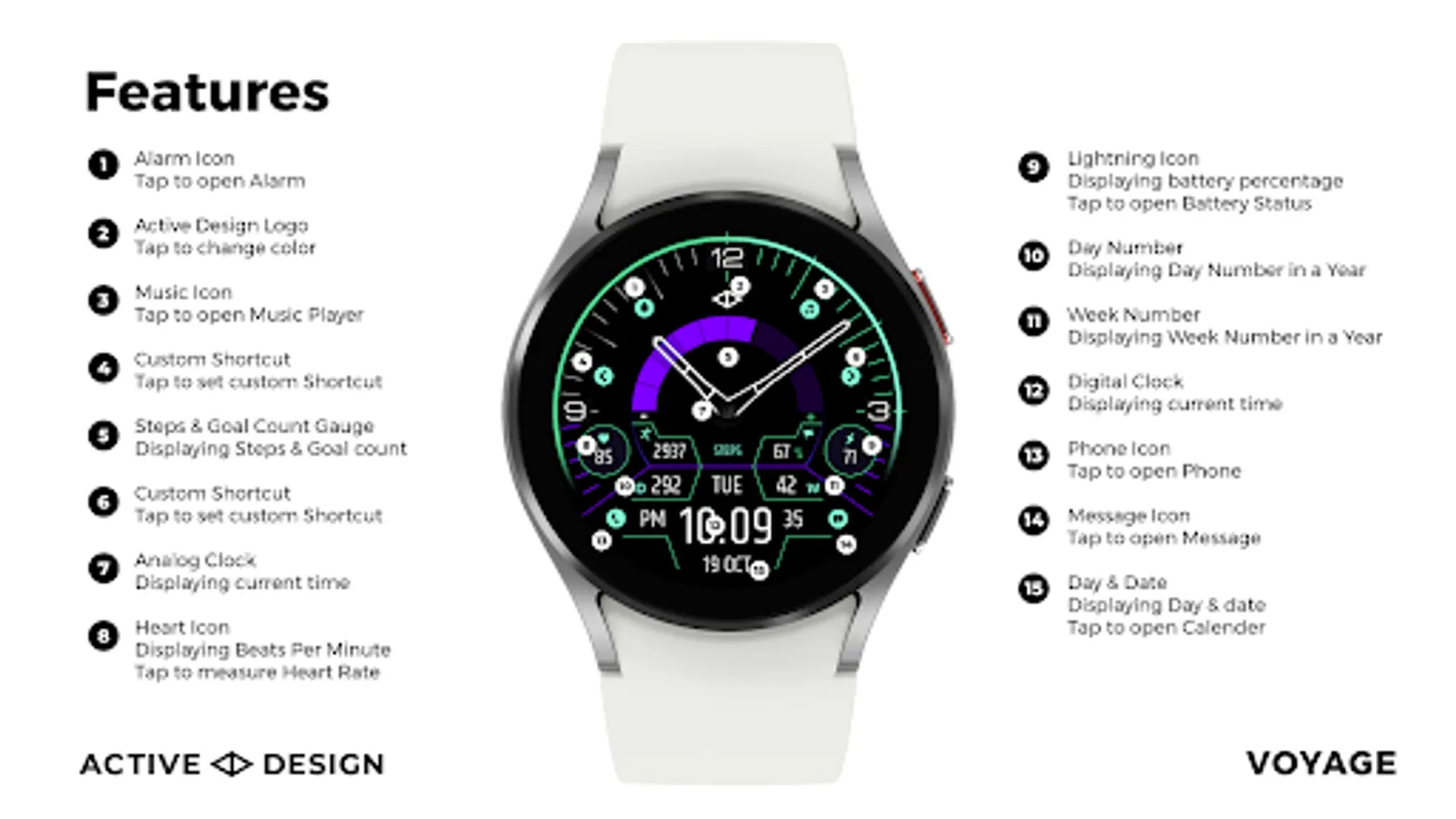 Enhance your smartwatch experience with Voyage, a watch face packed with an array of exciting features and customization options. With its sleek design and user-friendly interface, Voyage brings both style and functionality to your wrist.
