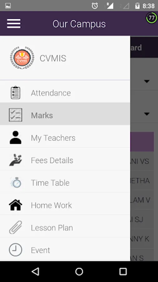 CVMIS - A Powerful replacement for the traditional School diary with Messenger. Parents will be know the Student Attendance, Marks, Homework, Timetable, Subject Teacher Details and all School Announcements with tweet back facility.