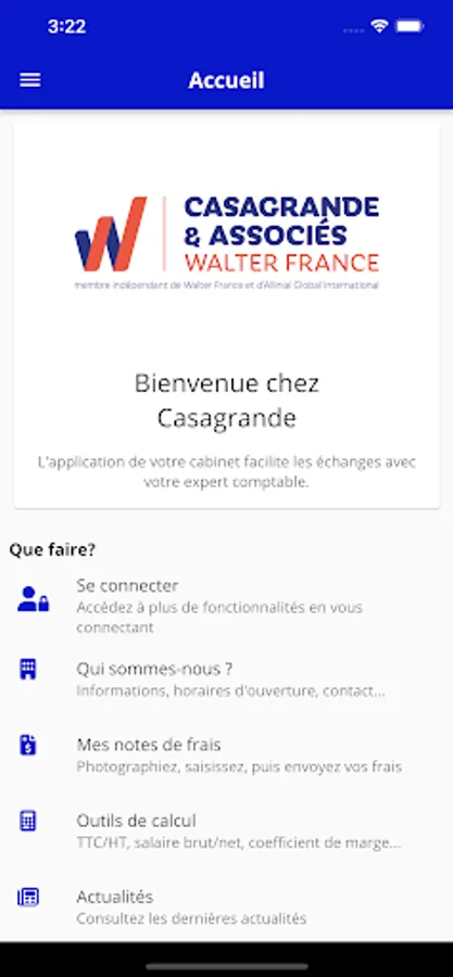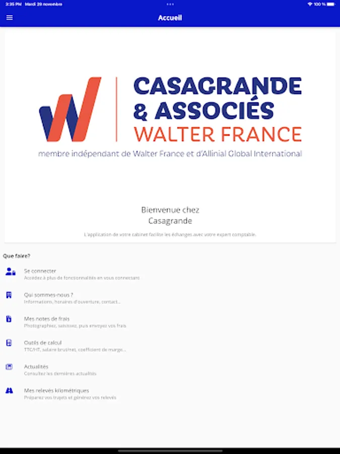 This smartphone application will allow you to access your documents at any time, send them to us, consult the firm's news, or even have visibility on the various activities related to your file.