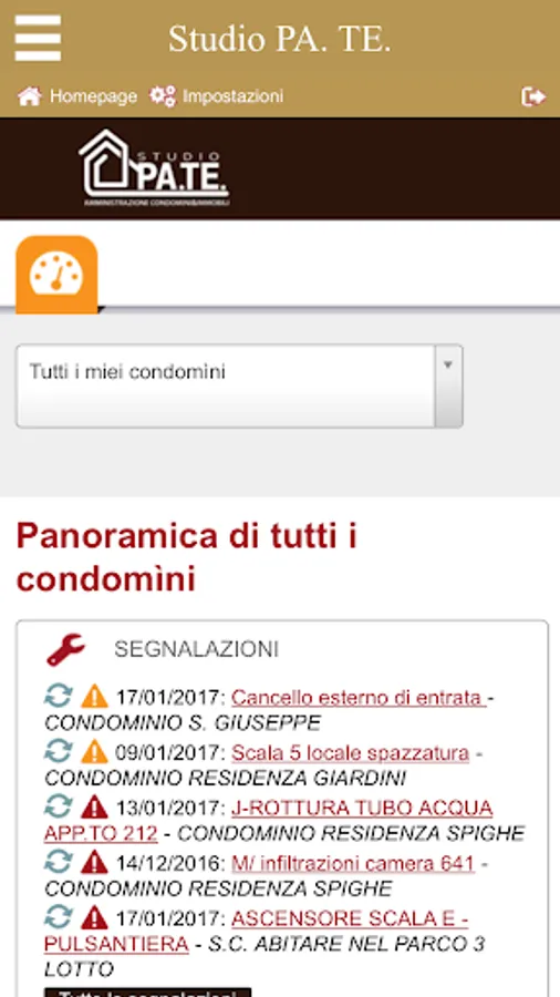 Grazie alle sue funzioni, STUDIO PA.TE. permette un dialogo costante e trasparente, accorcia i tempi di risoluzione dei problemi e permette a tutti si sapere cosa sta succedendo allinterno del proprio condominio.