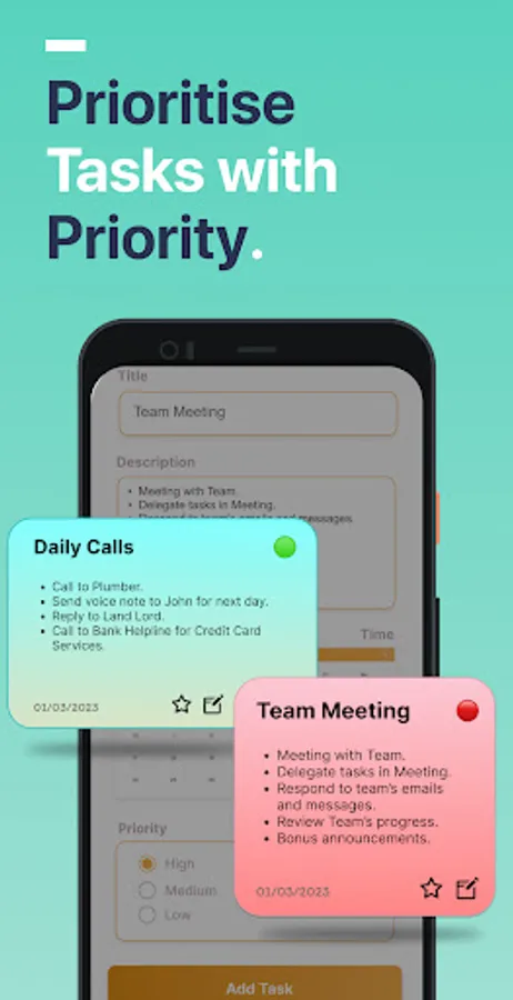 - Task Prioritisation: Prioritise your tasks based on their importance and urgency. TaskMate provides a simple and effective way to rank your tasks, allowing you to focus on what matters most and increase your productivity.