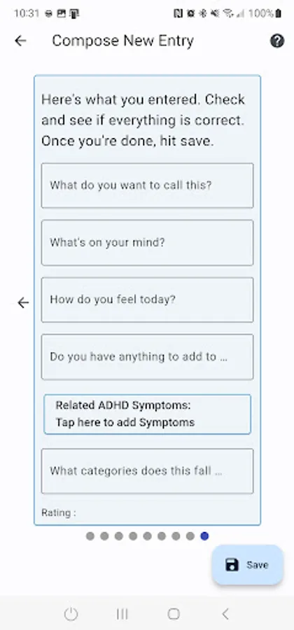 You can record events, thoughts, how you feel about them, any lessons learned, plans, ADHD related events, and more.