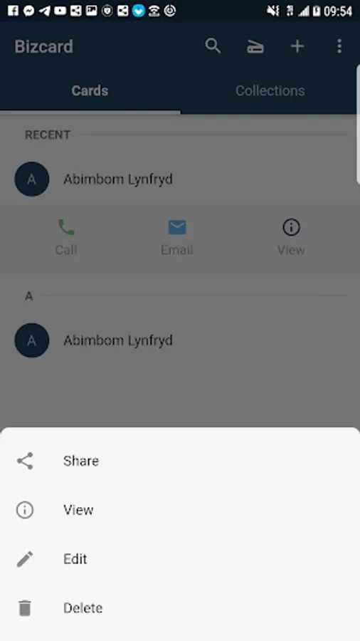 Bizcard works mainly with QrCodes eliminating the need for paper or printed contact cards for sharing contacts.