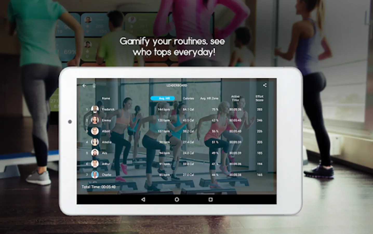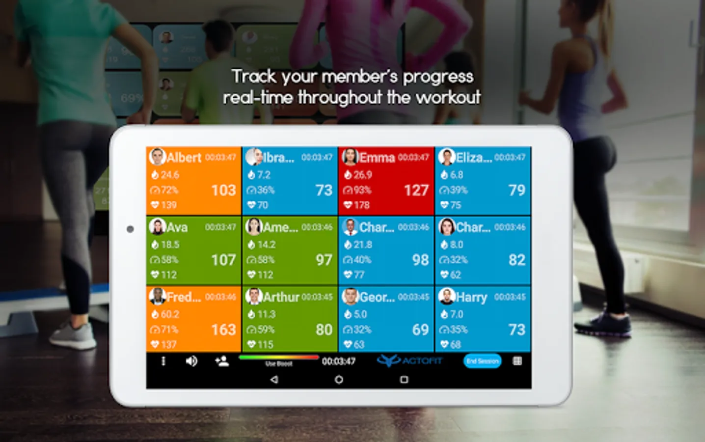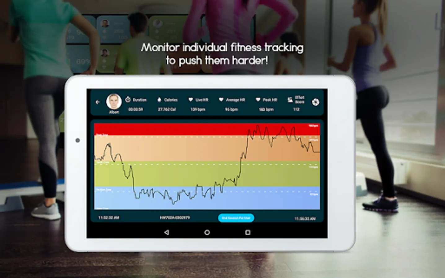 Precisely track your member's heart rate, intensity, calories and efforts in a group environment. Connect up-to 40 members at a time and view their heart rate, calorie burn and intensity percentages in real time. Simplify and gamify your club members fitness tracking with increased engagement using heart-rate monitoring in a very fun interface. Smooth connectivity using Android 5.1 or above OS Tablet, Phone or directly via an Android TV Box. Track fitness metrics, for all activities, be it Les Mills, Spinning, Strength Training, Cardio, Aerobics, Zumba, HIIT, Cross fit and have custom scores relevant to each activity.