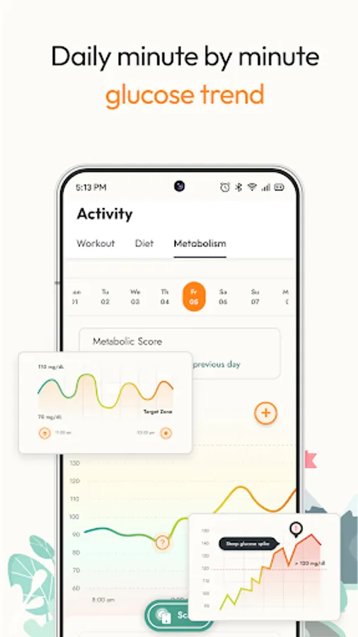 3. CGM devices: Measures what foods and activity affect your body with a Continuous Glucose Monitor. No daily pricking
