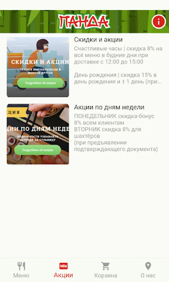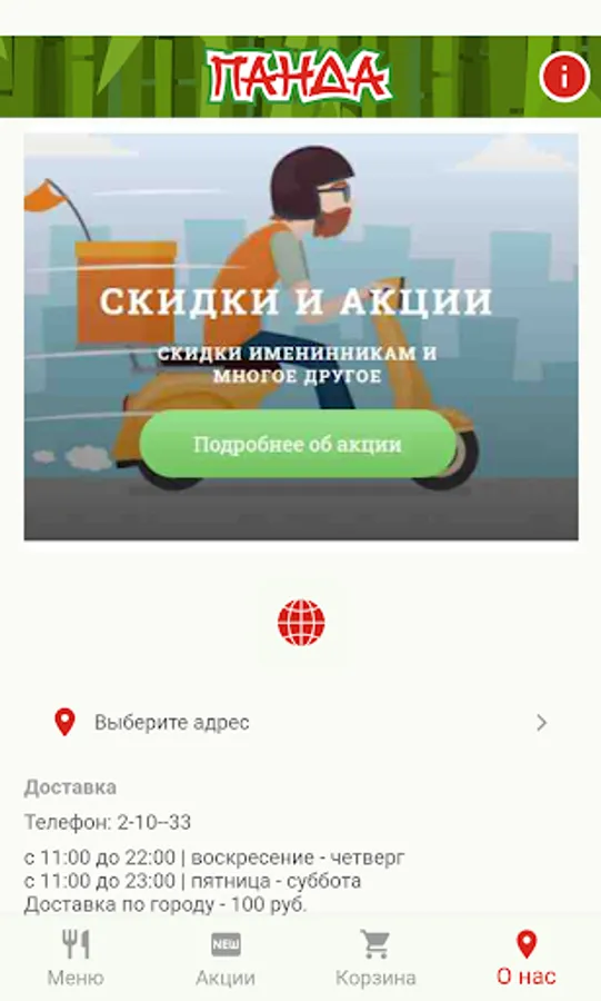 Panda is a service for the delivery of complete meals: rolls, sushi, WOK boxes, hot dishes, soups, salads, desserts, drinks. Anytime you want, anywhere, at home, at a party, at a party, you can enjoy the flavors of your favorite Japanese and Pan-Asian cuisine!