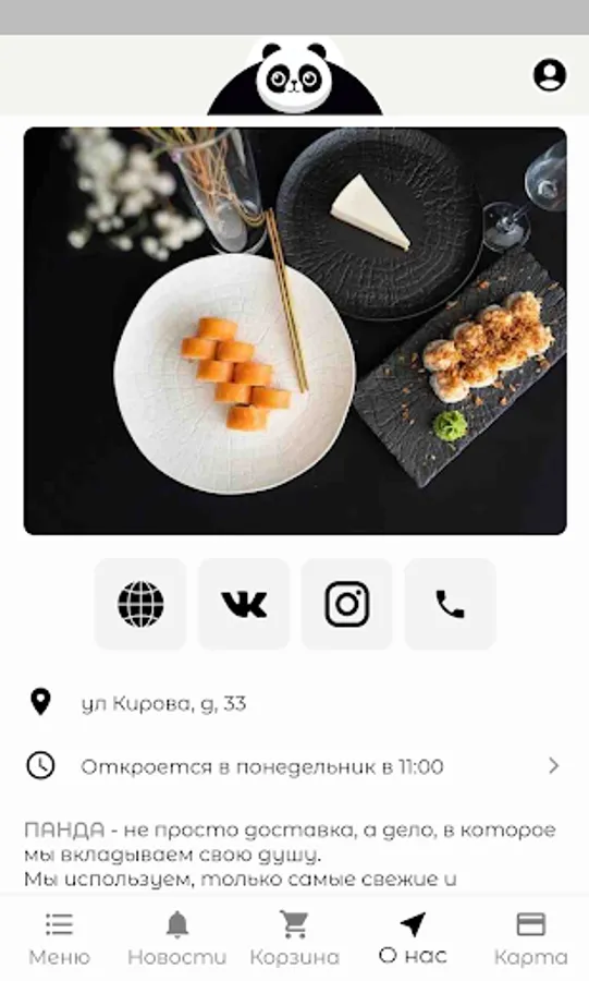 Feel the taste and freshness of selected products from sushi ‘’Panda’’. The quality you were looking for. The combination and balance of taste. Honest rolls, fast delivery and an ocean of taste - you will find all this with us. We cook with love for our work. Your Panda.