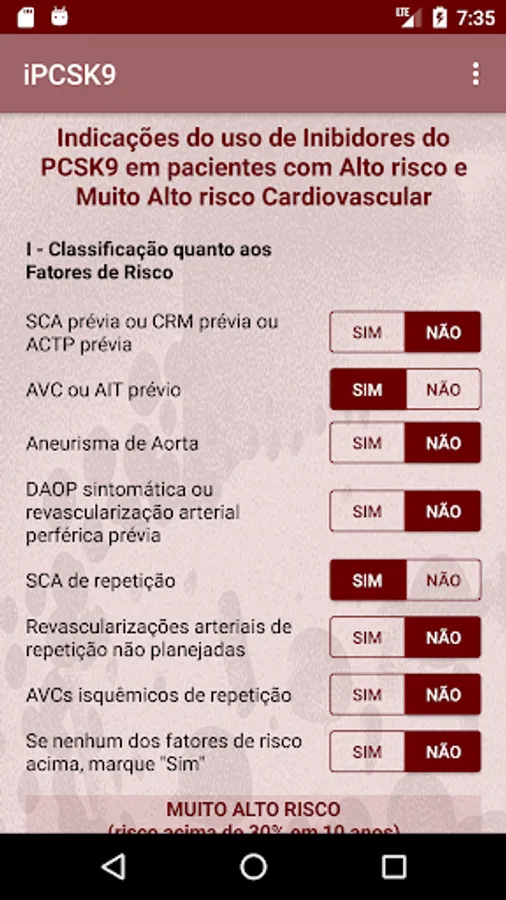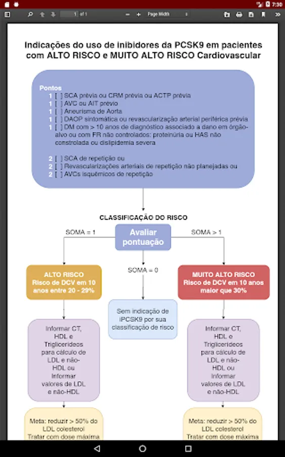 Indications of the use of PCSK9 Inhibitors in patients with High Risk and Very High Cardiovascular risk.