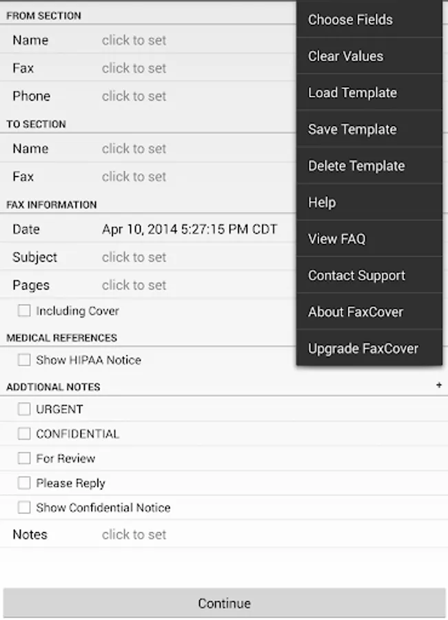 Create templates for common faxes and save them for easy use on your next fax cover page.