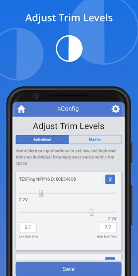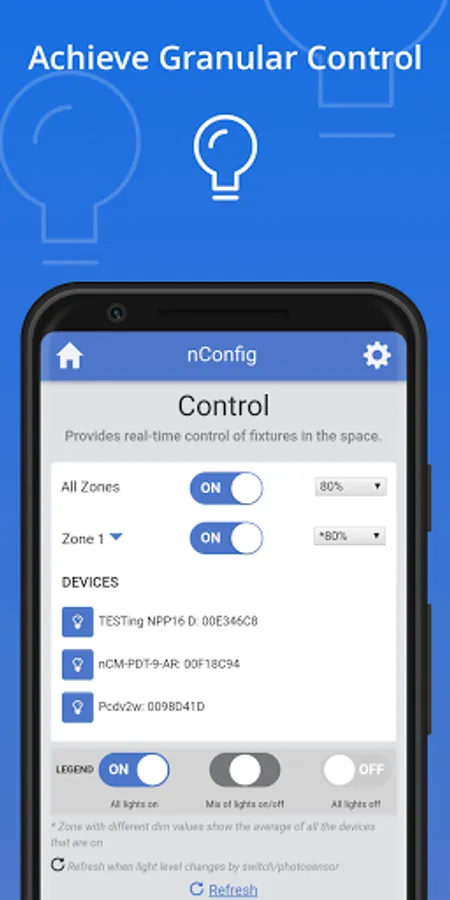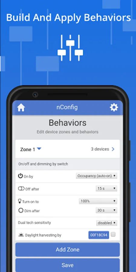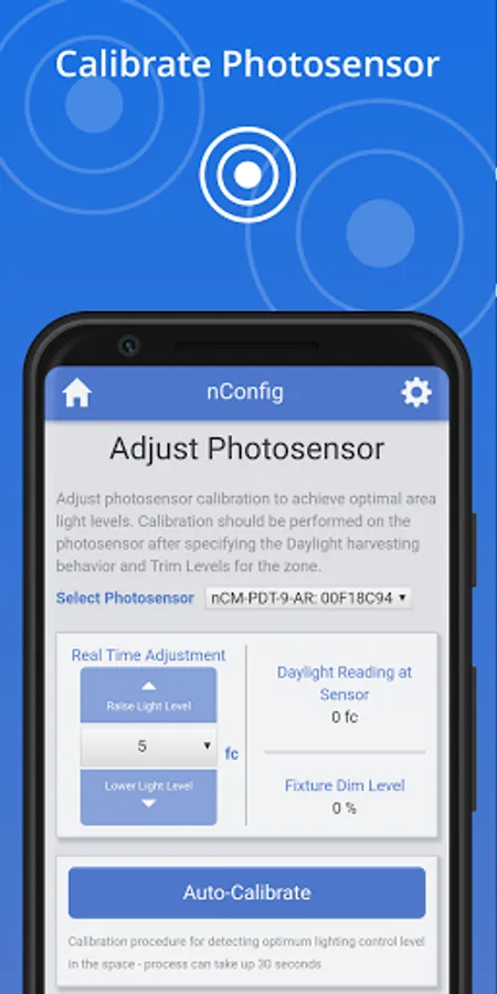 Completing simple nLight® device configuration has never been easier. The Acuity Controls™ nLight configuration application partners with an Light Bluetooth Low Energy(BLE) device (model: nIO BT) for simple system configuration changes.