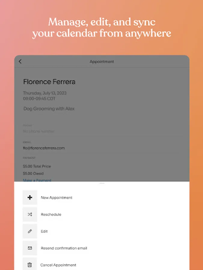 With seamless client scheduling, appointment notifications, secure mobile payments, and automated receipts, the Acuity Scheduling app helps you manage your calendar and clients.