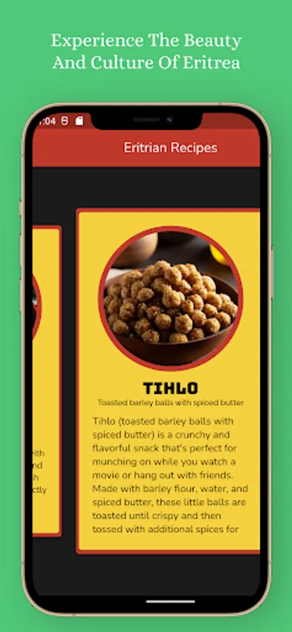 Our app features easy-to-follow recipes with step-by-step instructions and gorgeous photos that will make your taste buds dance. Whether you're a seasoned cook or a beginner, our app has something for everyone. Even if you've never tried Eritrean food before, our app will guide you through the process with helpful tips and tricks.