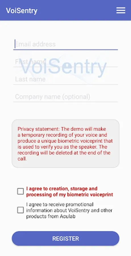 The application that demonstrates the capabilities of VoiSentry, a voice biometrics engine from Aculab.