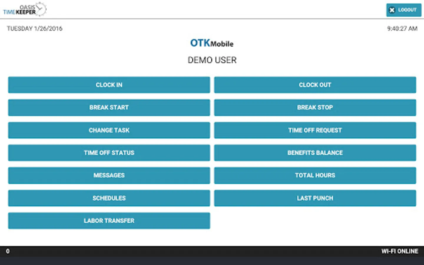 OTK Mobile can be deployed along with traditional time clocks or used as the exclusive clocking method for your time and attendance system.