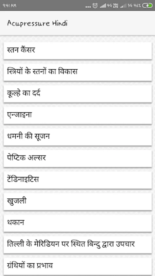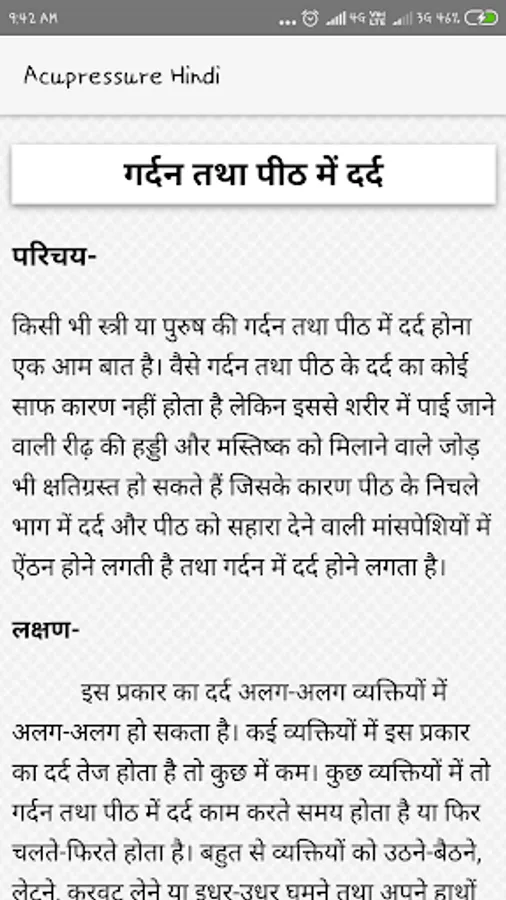 This app content provides to you all acupressure therapy treatment for diseases in Hindi language.