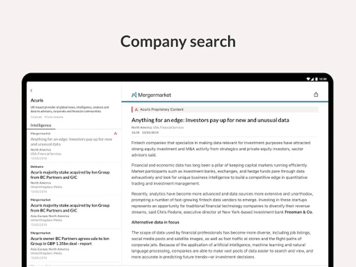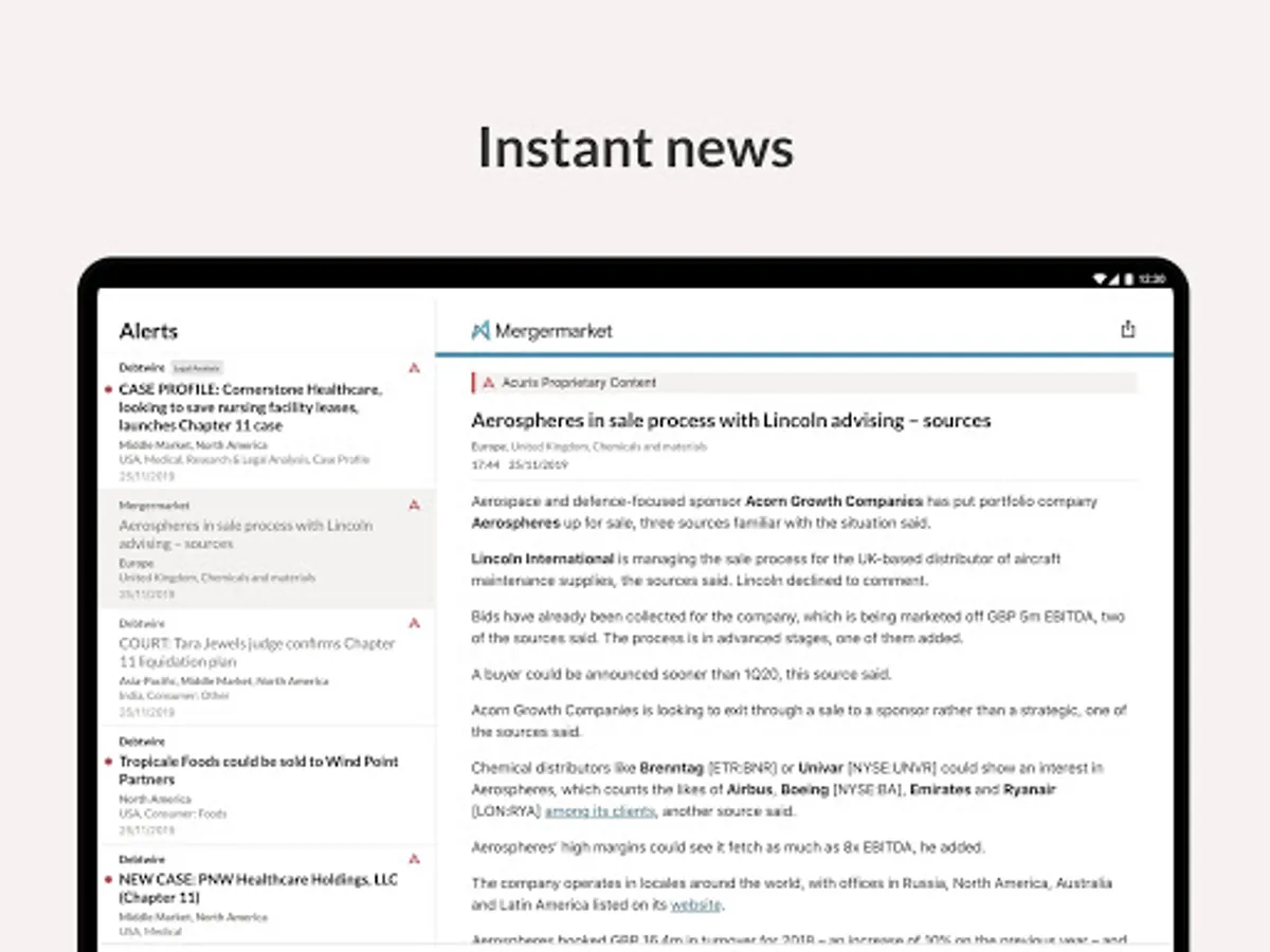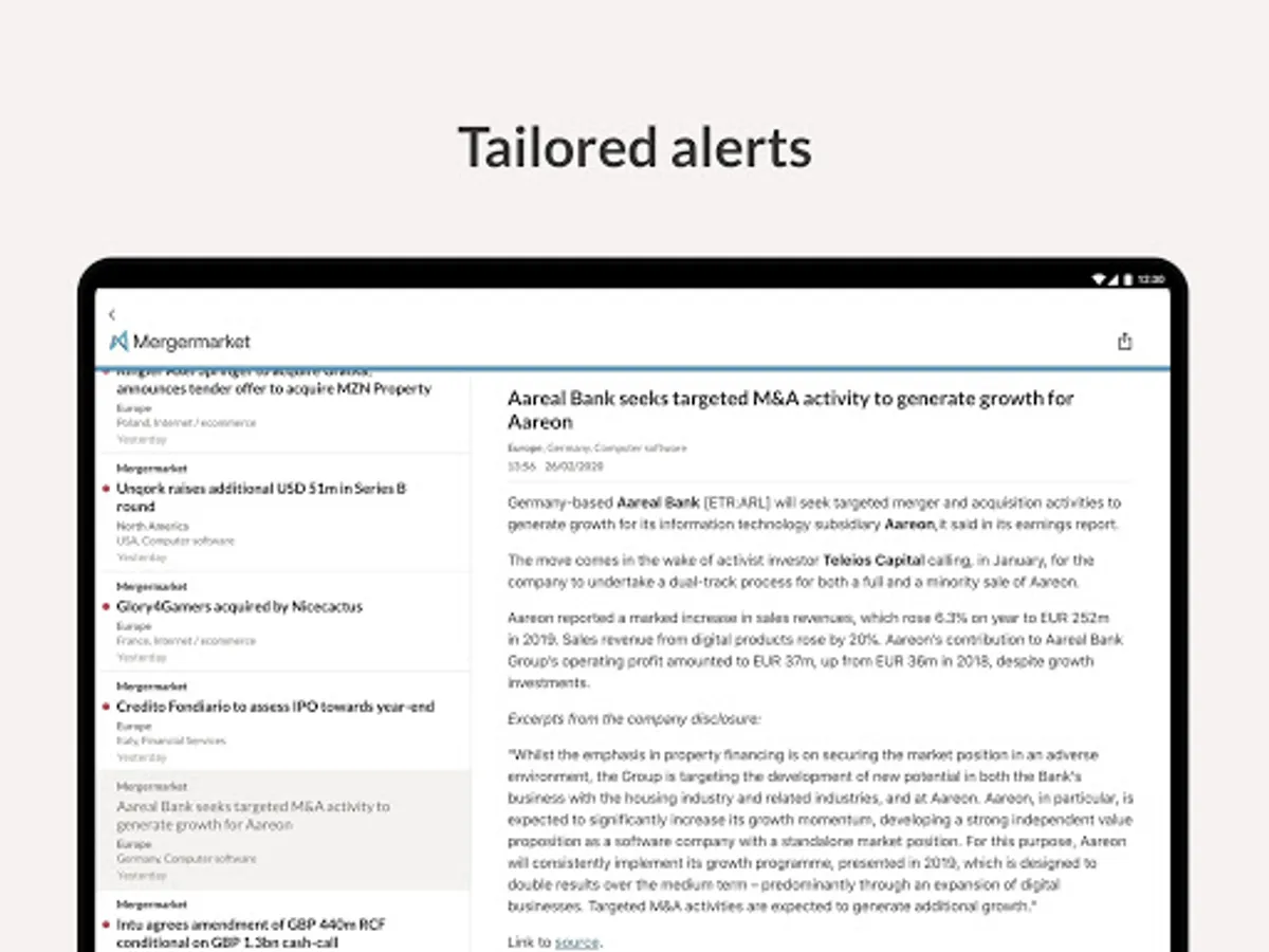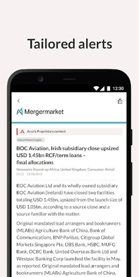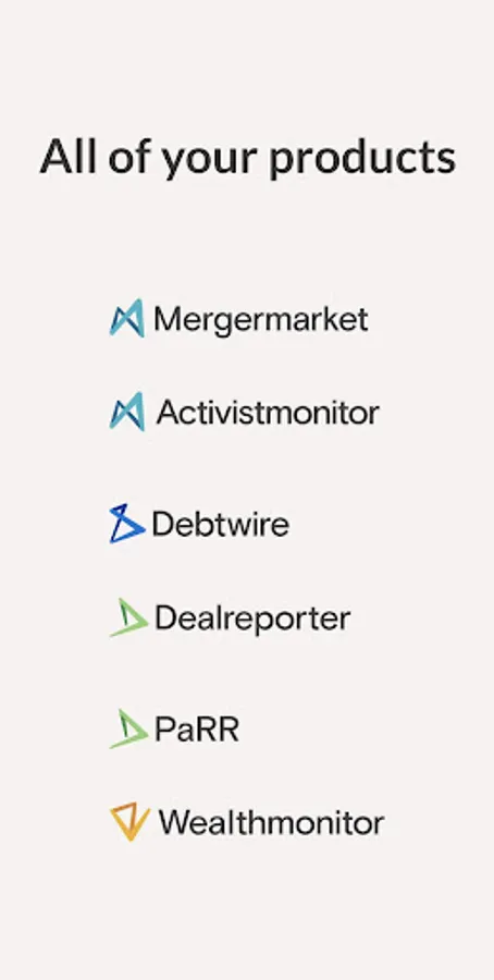 The App currently combines content from your subscriptions to Mergermarket, Debtwire, Dealreporter, Wealthmonitor, Activistmonitor and PaRR, with content from other products in the Acuris family coming soon.