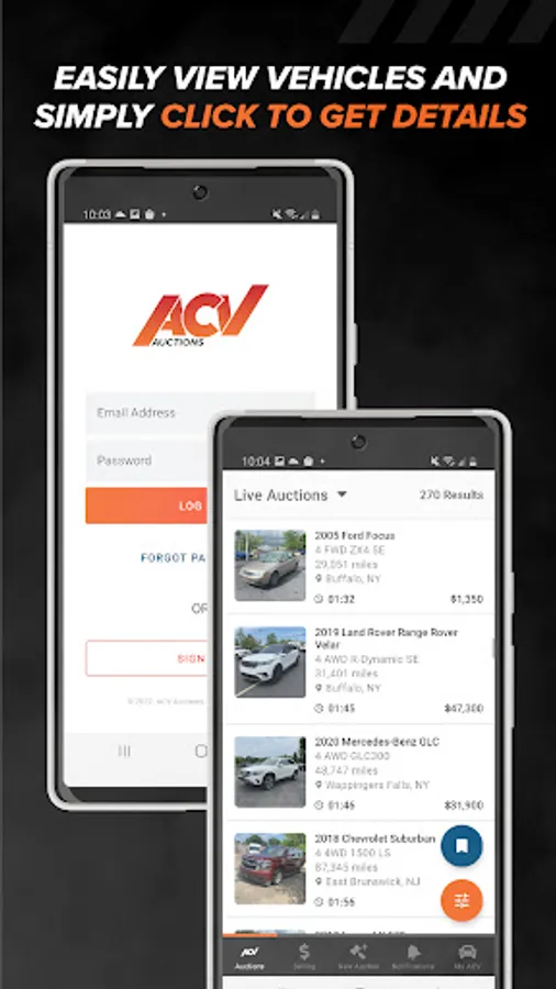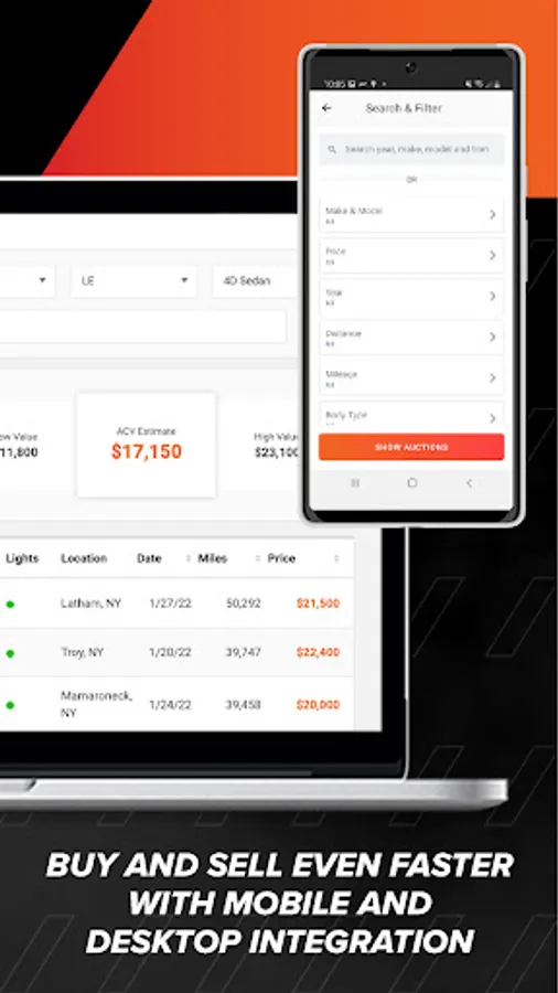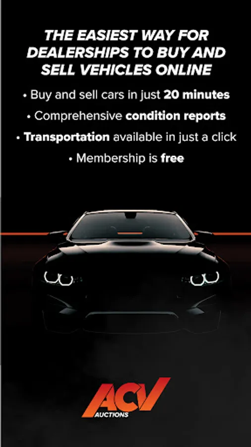 ACV Auctions provides the easiest way for dealerships to buy and sell vehicles online. The app is designed with you in mind and built in a way that eliminates any surprises. Our full-service platform includes payments, titles, transportation, and arbitration. Our Buyer and Seller fees are low, and becoming a member is quick, painless, and FREE. Download the app today and discover the newest and most straightforward way to buy and sell vehicles–in just 20 minutes.