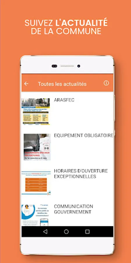 It also allows you to receive notifications from the town hall in order to inform you urgently, such as during a water or electricity cut, works, accidents, etc.