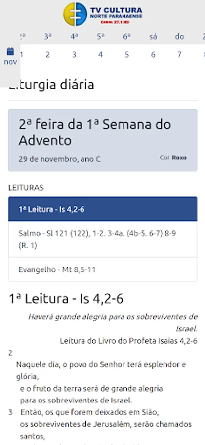 Follow the schedule through the TV Cultura Norte Paranaense application, channel 27 in Rolândia.