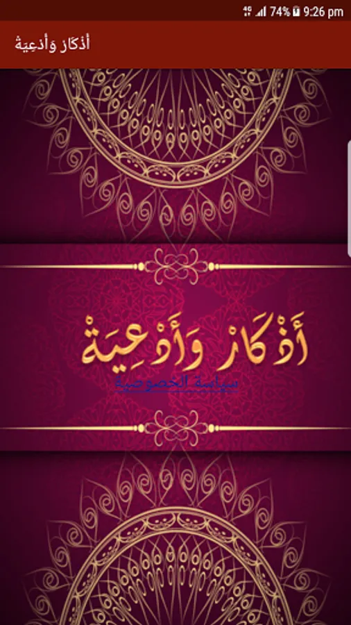 The application contains dhikr, including: