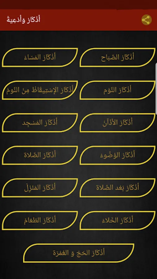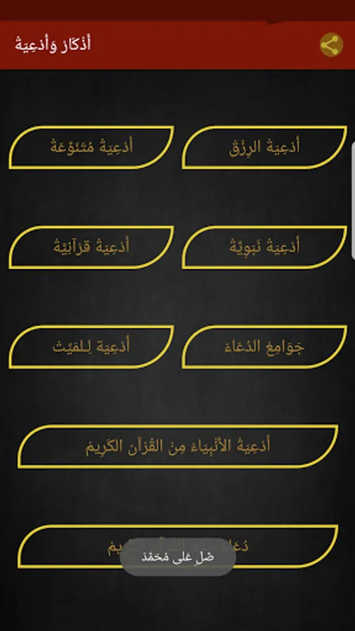Either the entire application or the text in the application can be shared, whether it is the supplications, supplications, legal paper, or favors according to the choice.
