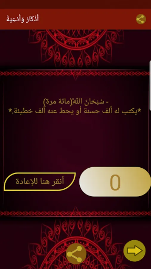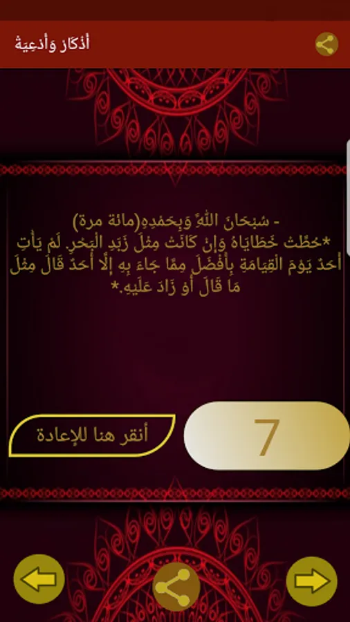 It contains a group of praises with the merit of each praise, with the addition of a counting icon and a vibration feature to facilitate counting the praises