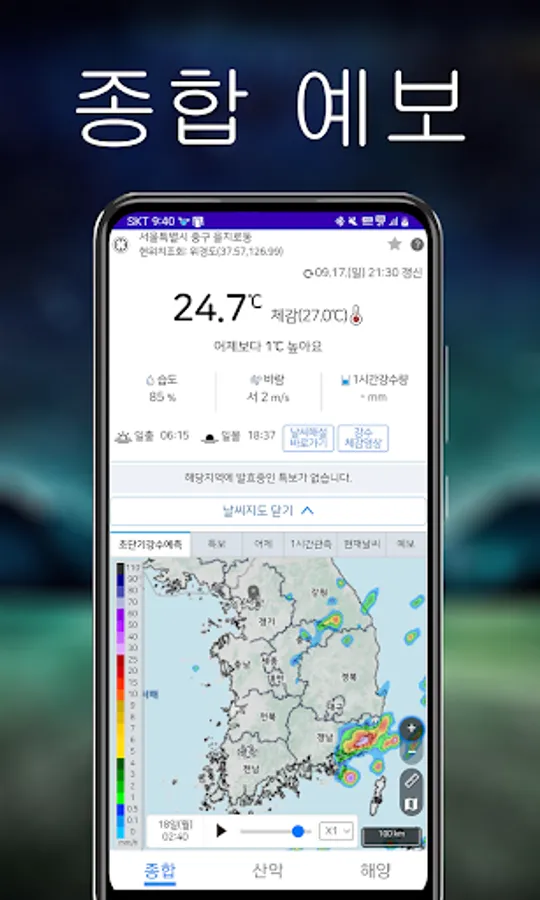 In particular, the 'Radar' function provides users with highly accurate weather information. This radar feature, unlike other typical weather apps, provides short but highly precise information to better support your daily life, travel, and outdoor activity plans. Although it has high accuracy, the radar image provided is short, so it is optimized for users who want to quickly understand the current weather situation.