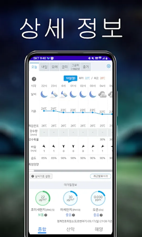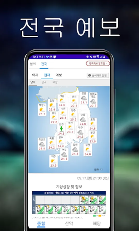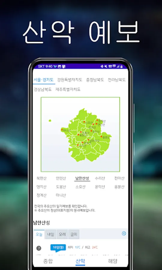 The Weather King app provides users with a variety of weather information. You can view general weather information as well as detailed mountain and marine weather. Additionally, you can check information such as fine dust, humidity, temperature, sunrise and sunset times, and wind speed at a glance.