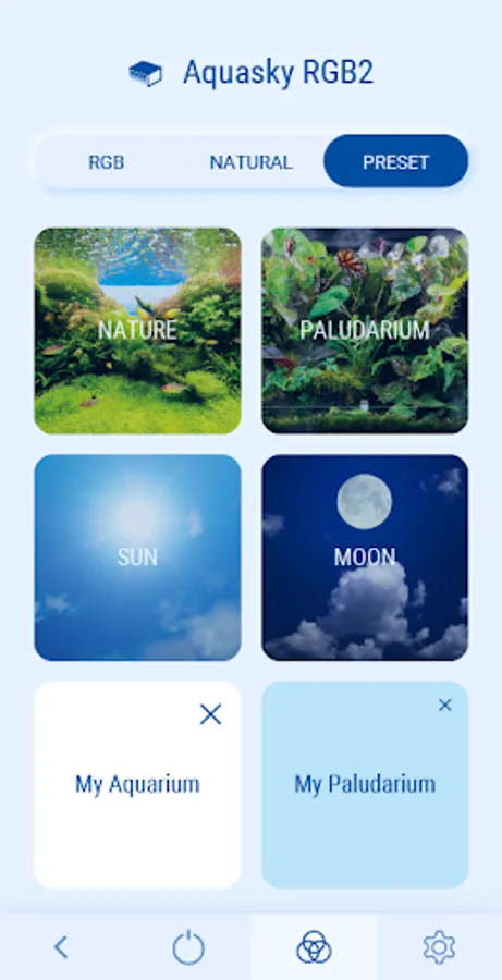 Smartphones and tablet devices can control compatible ADA lighting systems and smart products. The first compatible product, AquaSky RGB II, allows users to turn lights on and off, set timers, and adjust brightness and light color from the app. Light colors that you have adjusted yourself can be saved as presets and recalled at any time. In addition, a soft lighting mode setting allows for gradual turning on and off of lights.