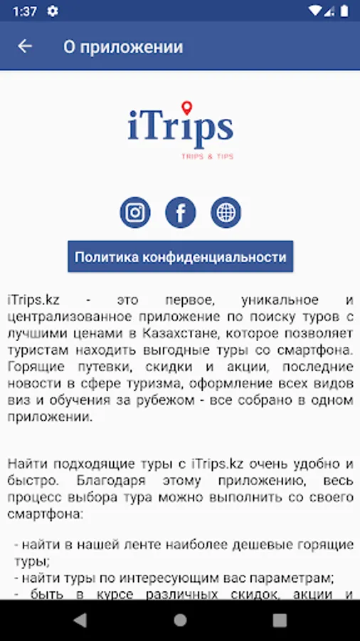 Finding suitable tours with iTrips is very convenient and fast. Thanks to this application, the whole tour selection process is possible