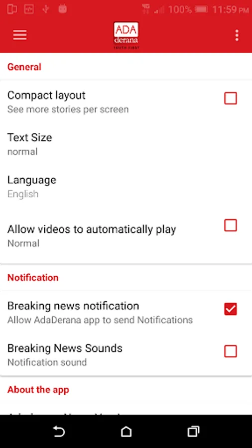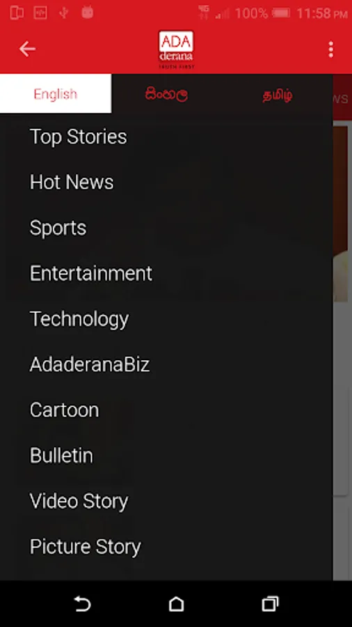 Ada Derana news app now available in English, Sinhala and Tamil. Select your default language upon installation. In the highly competitive news broadcasting space, Derana has built probably the most unbiased and comprehensive news property on offer "Ada Derana" – with a news team of 100 people geared to deliver the most accurate and timely information. Ada Derana To be the number one News brand among Sri Lankans in terms of loyalty by reaching them through every possible opportunity.