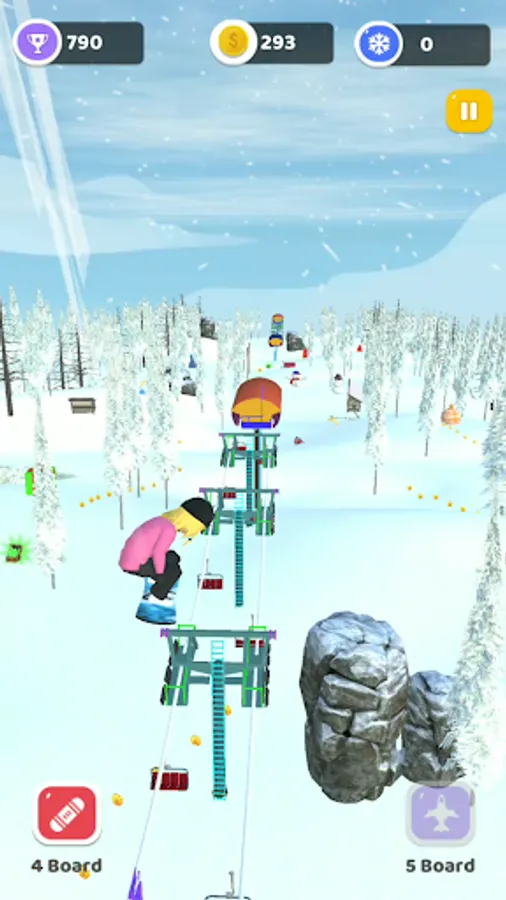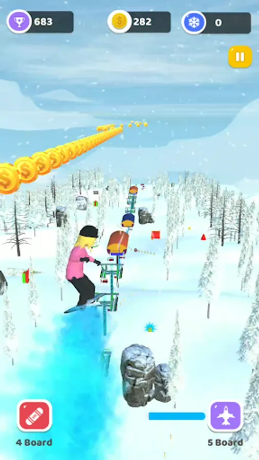 Compete against friends and other riders worldwide, in a competitive action packed infinite snowboarding game to see who can achieve the Longest Ride Score.