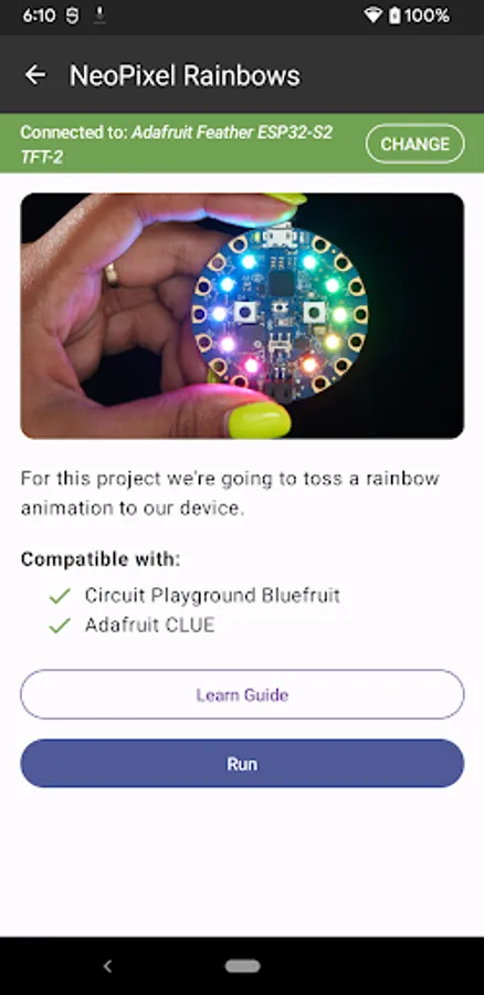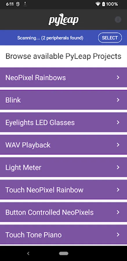 Effortlessly collect completed projects from the Adafruit Learn System and transfer them directly to your PyLeap compatible device without opening a code editor or connecting to a computer.