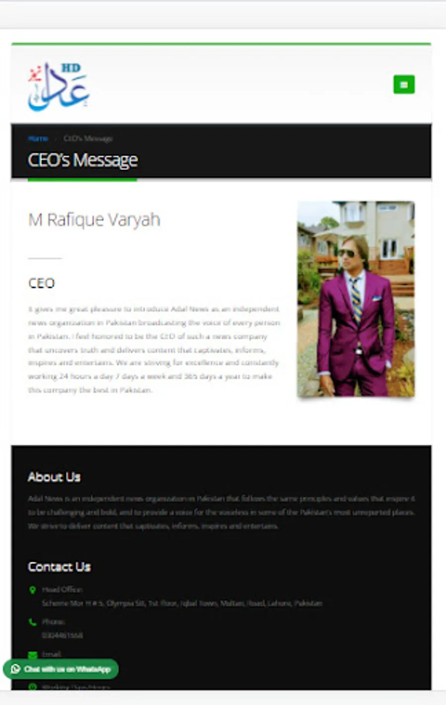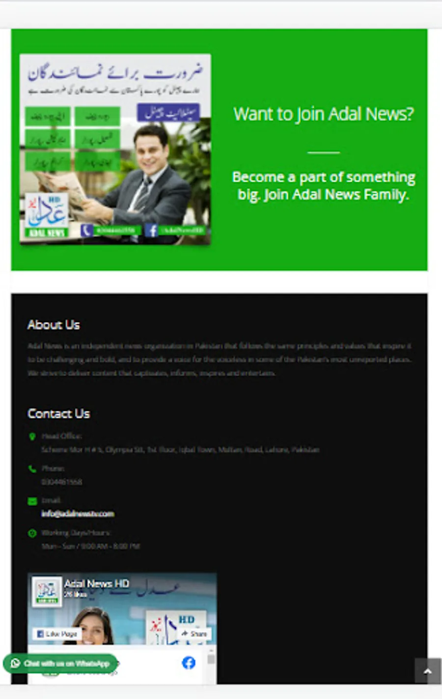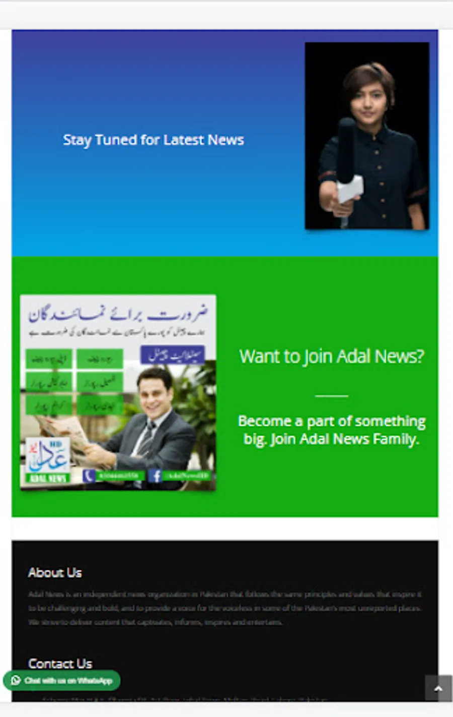 Adal News is an independent news organization in Pakistan that follows the same principles and values that inspire it to be challenging and bold, and to provide a voice for the voiceless in some of the Pakistan’s most unreported places. We strive to deliver content that captivates, informs, inspires and entertains.