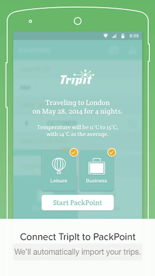 - Connect PackPoint to TripIt and create your packing lists automatically!