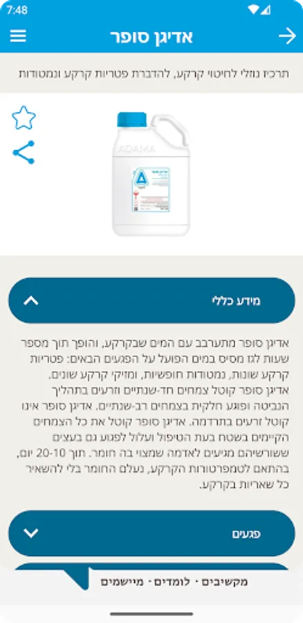 ADAMA is a leading global plant protection company, providing solutions to farmers and customers around the world for the control of weeds, diseases, pests and growth regulators. Adama Agan works to provide answers to Israeli farmers in the variety of challenges they face in the field of plant protection.