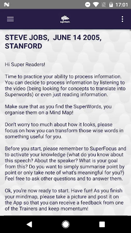 Superbrain trains you to focus on demand, read 3x faster, process and organise information deeply and to memorise anything you want quickly without repetition.