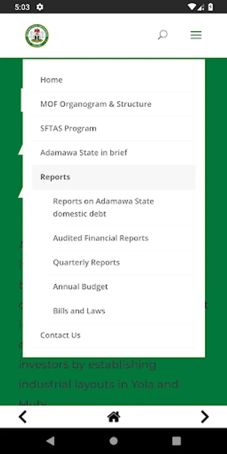 The official app for Adamawa State Ministry of Finance. It is designed to provide a platform for uploading financial reports in real-time. The users of the platform will be able to get up to date information on all financials of the Ministry at any time