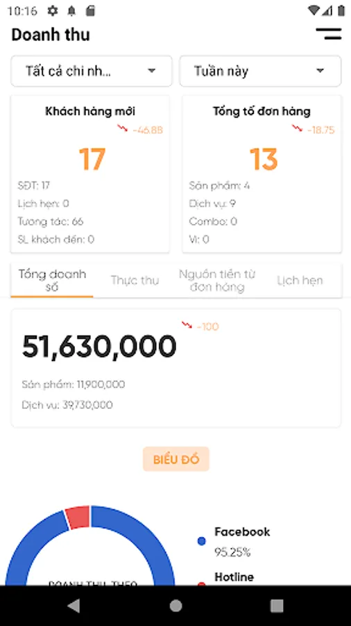 + Detailed report on business performance of each branch including: revenue, profit, outstanding balance