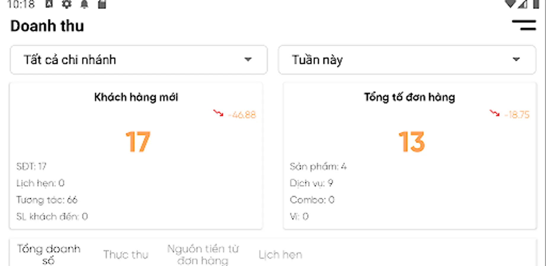 + Real-time chart reports (Orders, Sales, Revenue, Customers, Appointments, Customer Processes, reports...).