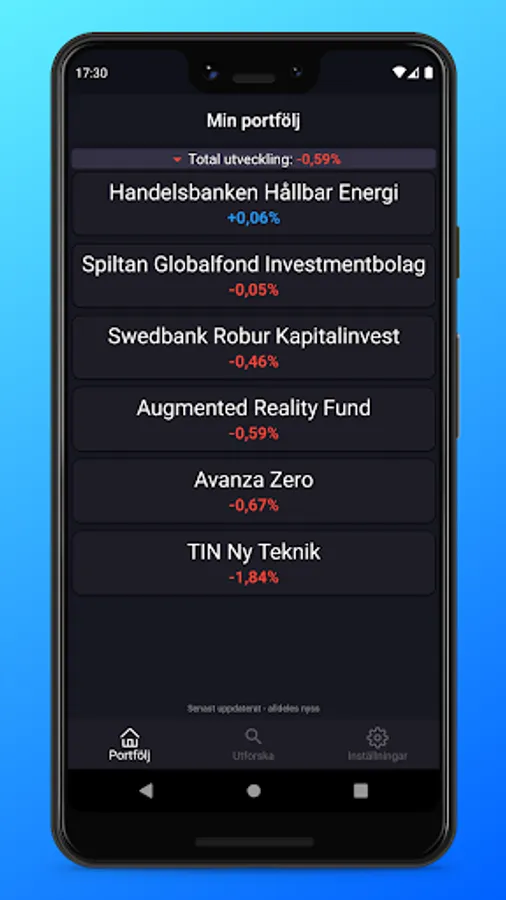 Instead of fussing with banking apps and only seeing one update per day, you can anytime & anywhere see how your funds have performed during the day.