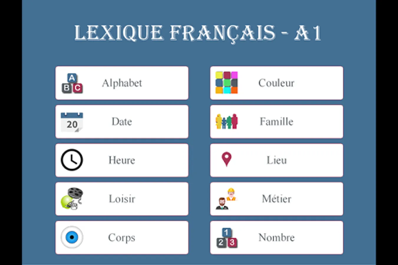 Glossary A1 proposes to discover and learn the French lexicon CEFR A1 repository.