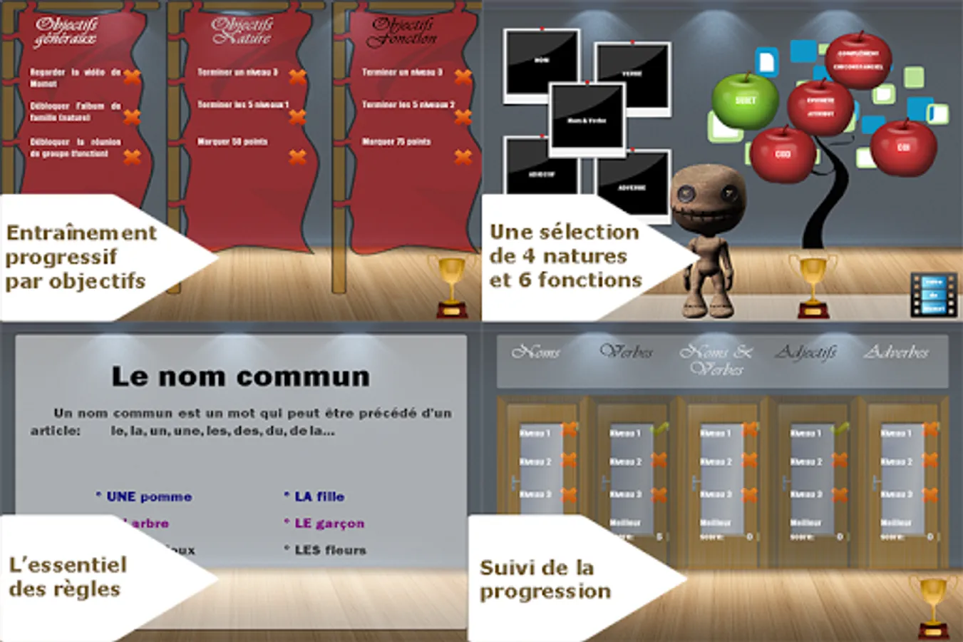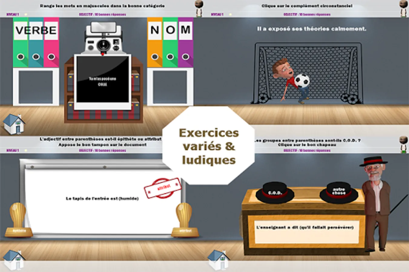 After consulting the essential rules, drives up to identify the nature and function of words in a sentence: 10 varied and fun workouts, 3 difficulty levels, nearly 1,500 available questions, to be achieved, the levels- balance sheets to unlock ...