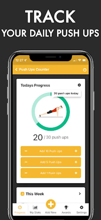With Pushups Counter you can easily track you pushups throughout the day. View statistics and important information about your pushup tracking. Set daily pushup goals.