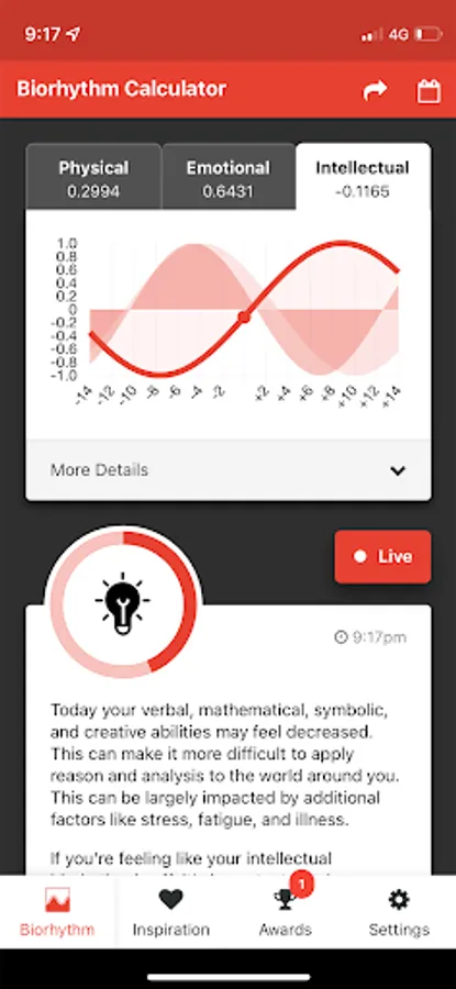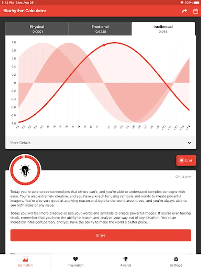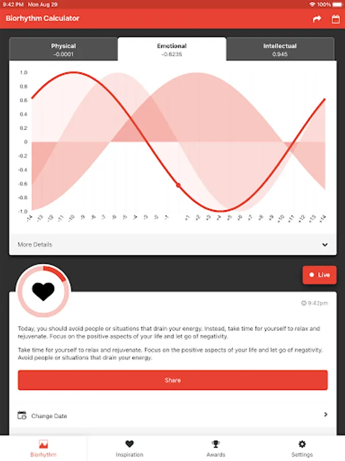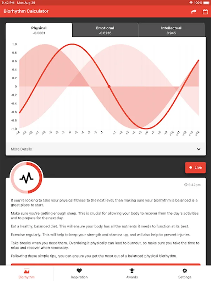 Biorhythm Calculator can help you better understand your physical, emotional, and intellectual state. This can be helpful in making decisions about your health, work, and relationships.
