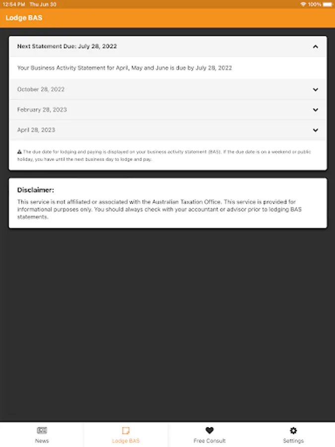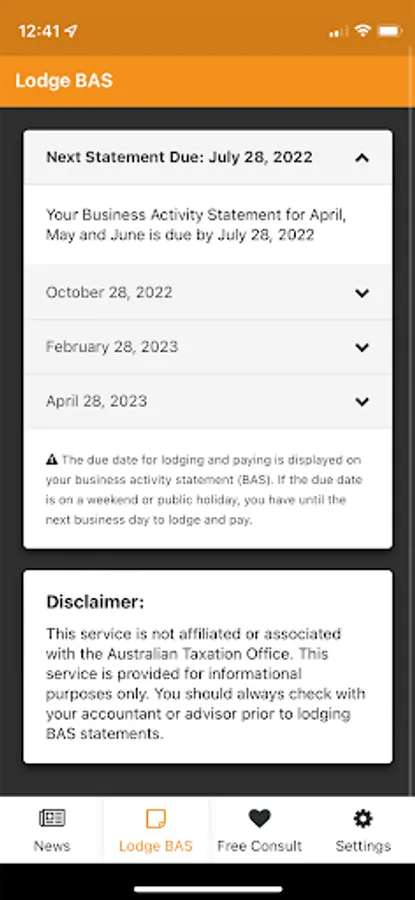 BAS Lodgement Reminders notifies you when your Business Activity Statement (BAS) is due.