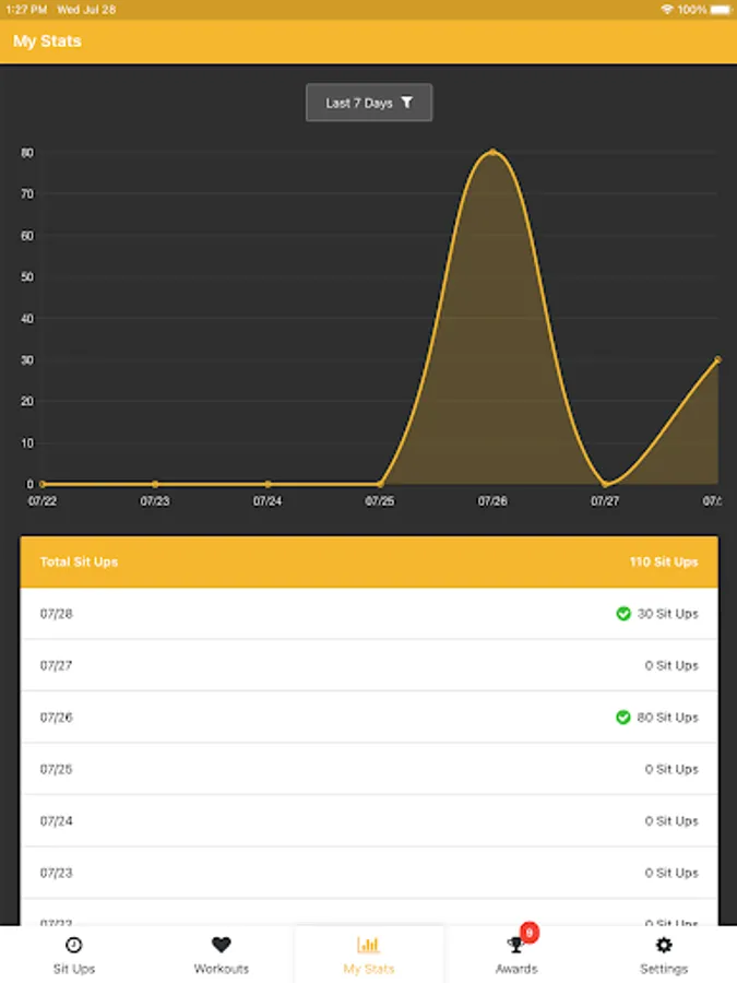 With Sit Ups & Crunches Counter you can easily track you situps throughout the day. View statistics and important information about your crunch tracking. Set daily situp goals.